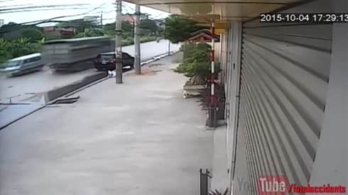 恐怖慎入!摩托司机摔倒被大货碾成肉泥