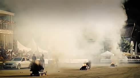 监控实拍:帅呆了!马路中间玩漂移 浓烟滚滚...