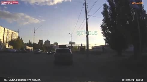 实拍 雨天开快车 撞飞美女 挡风玻璃都撞飞了
