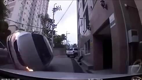 监控实拍:惊呆了!女司机开车上坡 结果却滚下山...