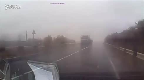 超恐怖 雨天超车失控 直接被大卡车撞碎
