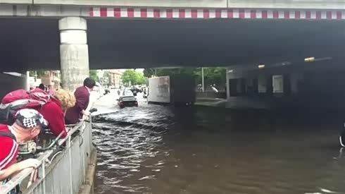 实拍 卡宴勇闯满是洪水的桥洞 结果杯具了