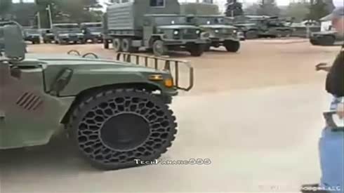 实拍:悍马非充气防爆轮胎,超强悍!!!
