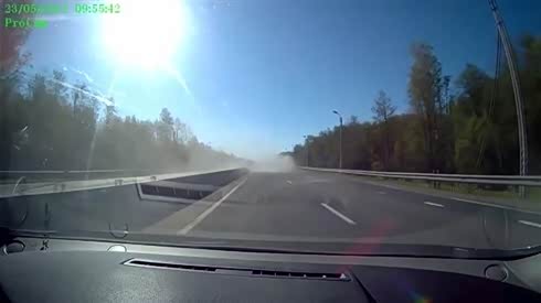 监控实拍 大客车高速路玩倒车 惨被撞翻
