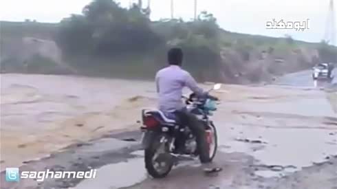 绝对笑死你 摩托车男挑战丰田陆巡过洪水 结果杯具了
