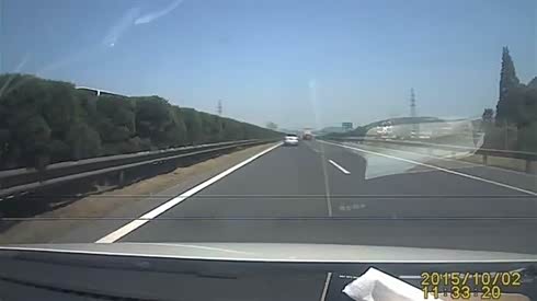 这TM是玩命吧 实拍美男脚踩两辆行驶的轿车玩自拍