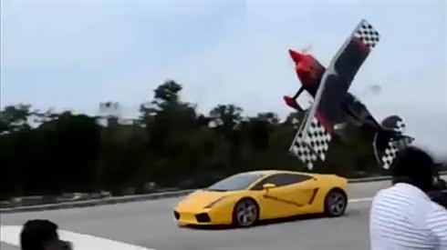 飞机贴地飞行 大战 兰博基尼Aventador LP750