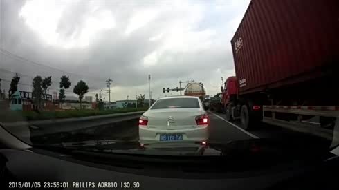 监控实拍:小车突然失控 迎头被大卡车吞吃...太恐怖
