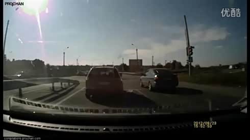战斗民族 俩车互相别扯不爽 红灯下直接开干