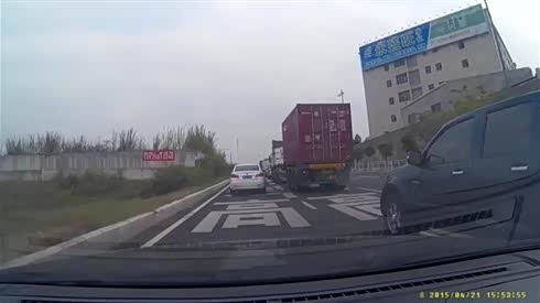 监控实拍:超载大货车 突然腾空而起 这是要起飞啊...