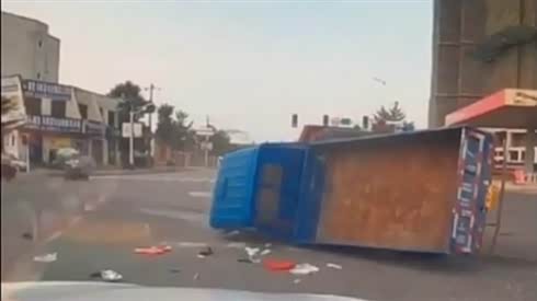超重迟早悲剧!爆笑拉木材小车被压翻了!