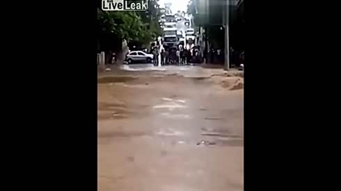 实拍:司机被洪水围困 几经努力 终被洪水冲走...