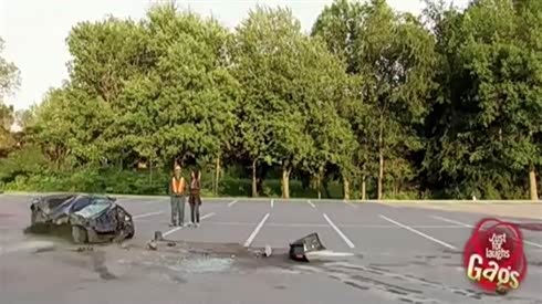 实拍:辣妹靓车被瞬间压扁的恶作剧