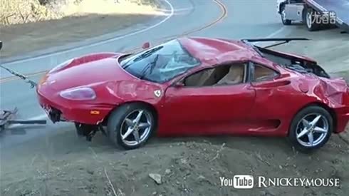 实拍:法拉利飙车失控 翻进山沟 太惨烈