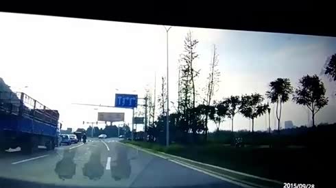 斯柯达司机打瞌睡 被货车撞碎