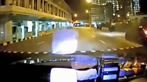 惊魂一幕:高速公路矿泉水瓶碾压后飞起砸到后车前风挡