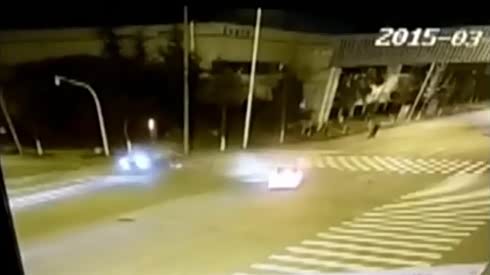 电子眼实拍 法拉利458时速近300闯红灯 瞬间撞碎