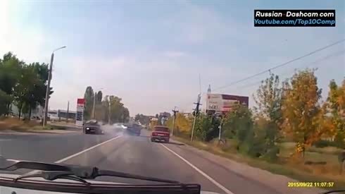 监控实拍:二货司机疯狂超车 失控乱窜被撞翻