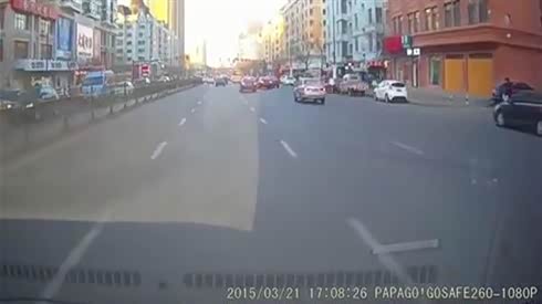 监控实拍:二货司机连续变道 撞了个正着...倒霉