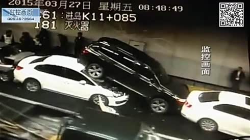 监控实拍:海底隧道 11车连环追尾 后车掀起前车 惊险万分...