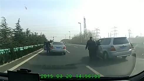 监控实拍:高速爆胎失控 两车躲闪不及相撞...