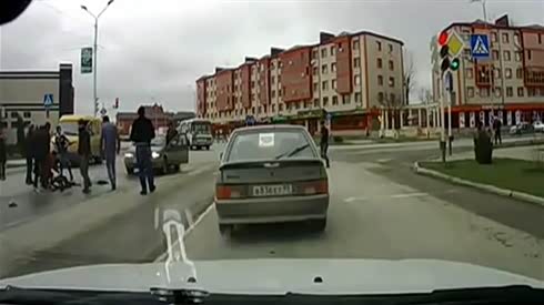 监控实拍:摩托男女路口抢行被撞飞 路人纷纷热心相助...
