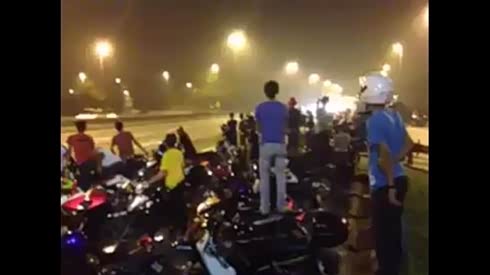 太惨了 十几辆重型摩托车撞在一起 火星四溅