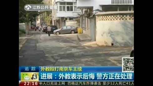 外教殴打南京车主续 监控:六旬老人被外教打倒在地