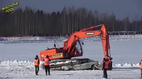 鸡蛋碰石头 轿车挑衅挖掘机被无情蹂躏