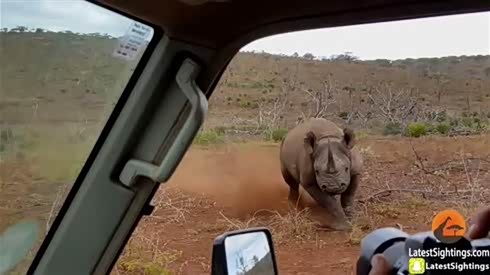 实在太敬业 车内摄像师不惧犀牛侵袭