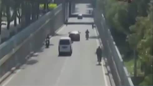 监控实拍:飞来横祸!飙车失控追尾 车滚人飞...