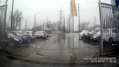 监控实拍:牛车不是吹出来的 奔驰是这样磨练出来滴...