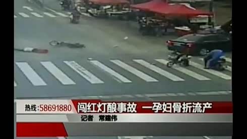 监控实拍:闯红灯酿大祸 小货车撞飞孕妇 骨折流产...