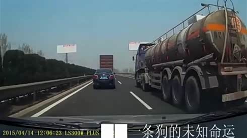 监控实拍:高速超车撞了一条狗 不知那条狗怎么样了..