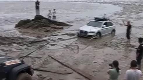 实拍:奥迪沙滩游玩 深陷泥潭被潮水淹没 连困3天...