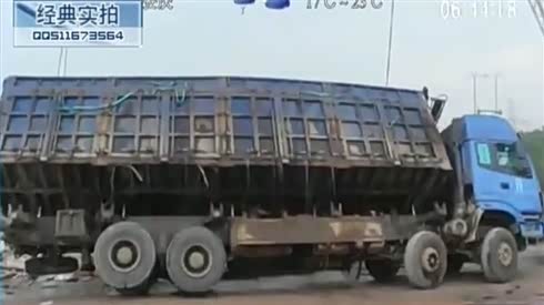 实拍:疯狂大货车 雨天冲断护栏扎进堰塘 司机命悬一线...