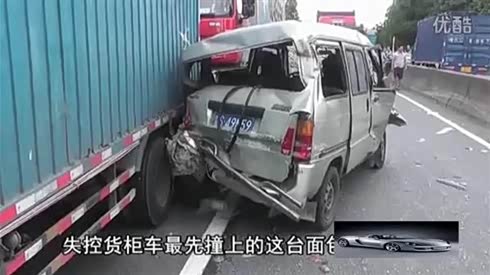 实拍:惨烈现场!大货车追尾 连撞十八台车...