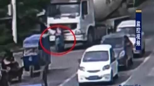 监控实拍:罐车拐弯盲区害人 女子骑电动车被碾成两段