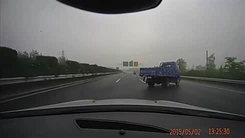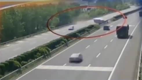 监控实拍:高速车祸受惊吓 货车失控大甩尾 小车神避让 躲过一劫