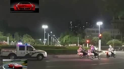监控实拍:摩托疯狂飙车 警方深夜围剿