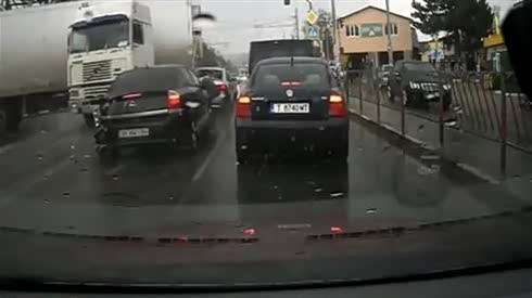 监控实拍:雨天路滑 大货车突然失控 一路横扫 多车遭殃...