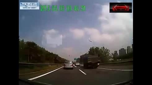 监控实拍:应急车道超车 遭遇大货车残虐 太恐怖...