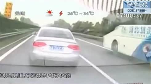 监控实拍:强行超车未果 奥迪车高速公路上“斗气” 疯狂别车...