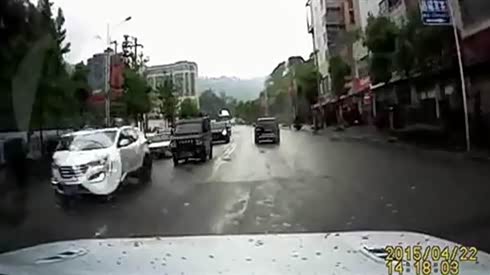 监控实拍:二货司机强行并道 SUV遭大殃 吓得蹦了起来...