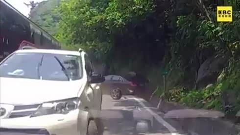 监控实拍:吓尿了!二货司机开车打瞌睡 撞栏杆恐怖大甩尾...
