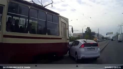 监控实拍:小车街头艳遇 与电车激情一吻...