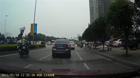 监控实拍:骑手挡路 路怒症司机直接就撞了...
