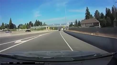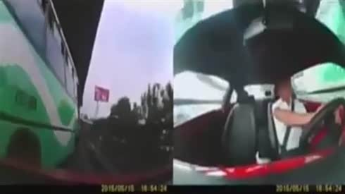 监控实拍:二货司机匝道弯路超车 惨被BUS教训...