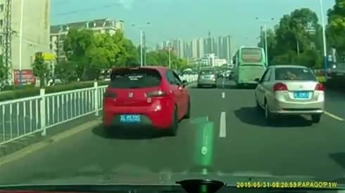 监控实拍:惊魂!快车道突然急停车 后车急躲闪 当场吓尿了...
