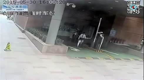 监控实拍:女司机倒车狂踩油门 交警惊魂 跳起来逃命...